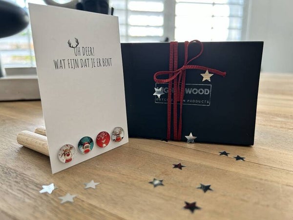 De Christmas set Rudolphset bestaat uit vier mooie leuke afbeeldingen van Rudolph the red nose reindeer. Super om je favoriete kerstkaart met deze vrolijke red nose neer te zetten. Zo leuk voor met de feestdagen of eigenlijk voor iedere kaart of foto. Een o zo leuke en handige toevoeging bij iedere kaart. Deze kaarthouder set van 4 komt net als alle andere sets in een prachtig zwart crafts doosje. Daarmee is dit het ideale cadeautje om te krijgen, maar zeker ook om te geven!