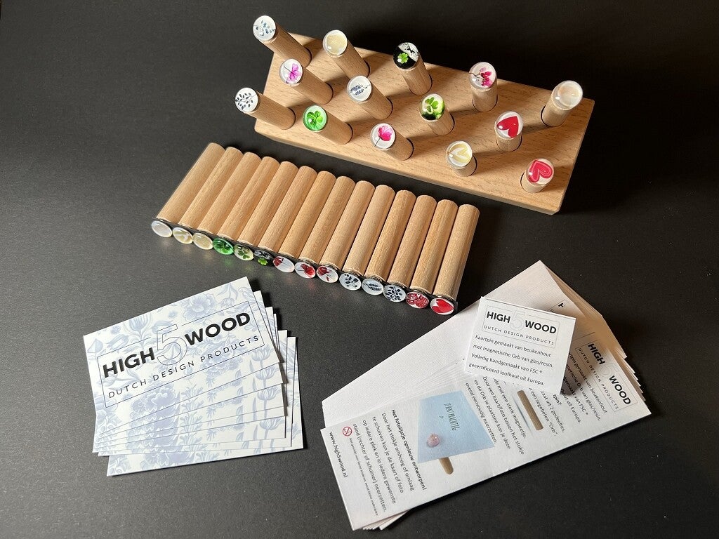 Wordt geleverd met 28 van de best verkochte kaartpins uit de shop (dus compleet geleverd, 1 x houten display geschikt voor 14 kaartpins, 28 x kaartpin, 28 x handleiding en een aantal visitekaartjes. ) Ideaal voor op de toonbank.