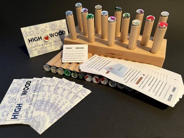 Display geschikt voor 14 kaartpins. Ideaal om je favoriete kaartpins mooi uit te stallen. Wordt geleverd met 28 van de best verkochte kaartpins uit de shop (dus compleet geleverd, 1 x houten display geschikt voor 14 kaartpins, 28 x kaartpin, 28 x handleiding en een aantal visitekaartjes. ) Ideaal voor op de toonbank. Nu exclusief voor retailers. De volgende sets worden meegeleverd met het display: Klavertje 4, klaproos, pink poppy, small blue flowers, golden heart, en loveley