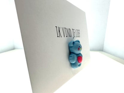 Kaarthouder met een 3D figuurtje van een blauwe beer.